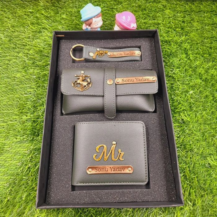 Surprise him with the perfect blend of style, function, and personalization with this Men’s 3-in-1 Gift Set featuring a sleek wallet, a durable goggles cover, and a matching keyring — all personalized with his name and a custom charm.