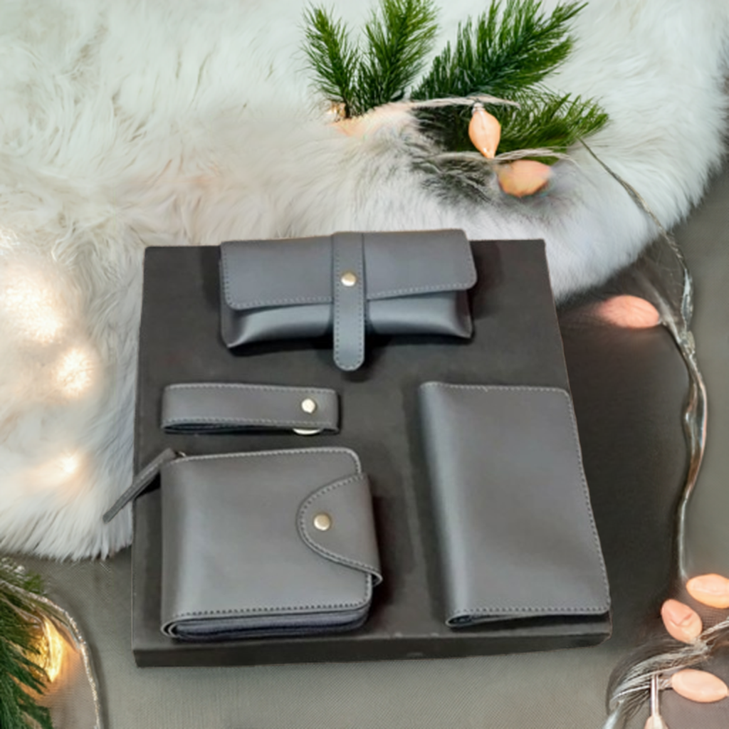 This 4-in-1 grey combo seamlessly combines style, functionality, and personalization, making it an excellent gift or personal accessory for anyone who values practical elegance and a coordinated appearance.