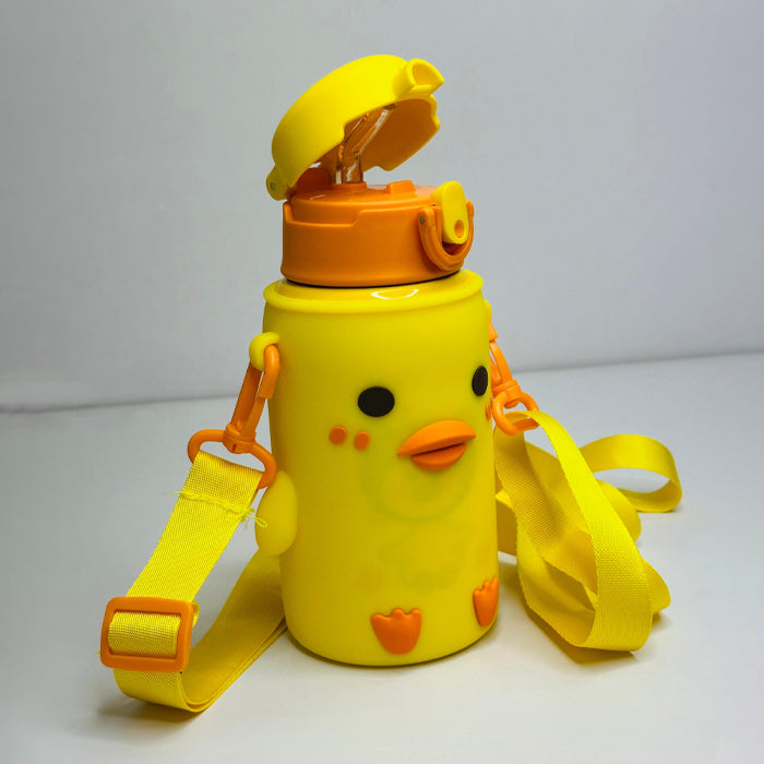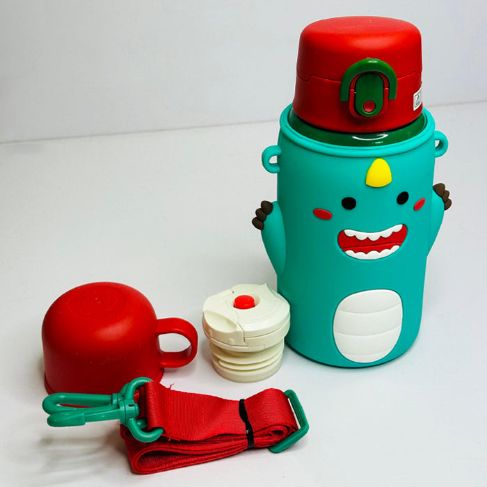 Equipped with a soft silicone spout for gentle sipping and two versatile sipping caps with a drinking cup, this bottle offers multiple ways to enjoy your favorite beverages. The broad adjustable strap makes carrying effortless, whether to classrooms, playgrounds, or family outings.