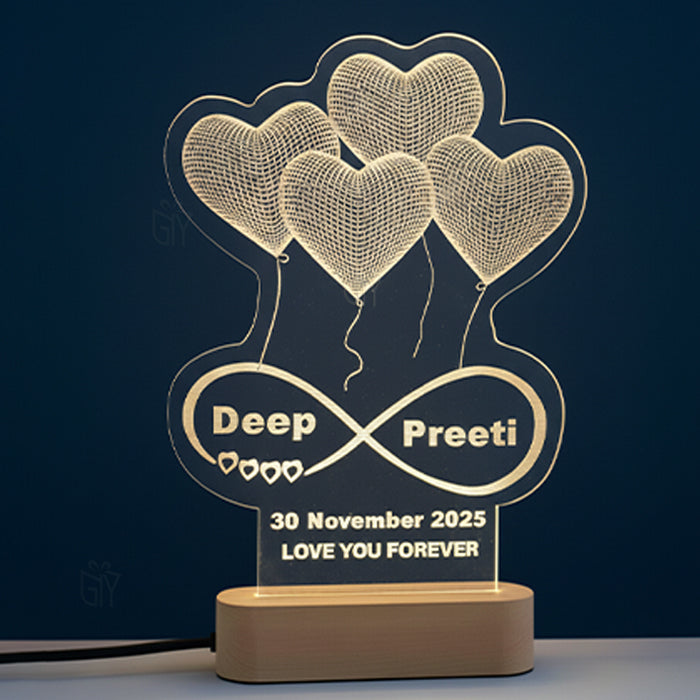 Make every moment unforgettable with this Personalized Acrylic LED Night Lamp featuring a romantic Heart Balloon design and your custom Names & Date. This elegant night light adds a warm, cozy glow and serves as a beautiful reminder of love, memories, and special milestones.